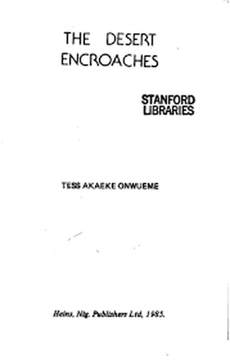 - 1985: The Desert Encroaches (a play), Owerri, Nigeria: Heins Publisher Ltd. *Winner, 1985 Association of Nigerian Authors (ANA) Award in Drama.